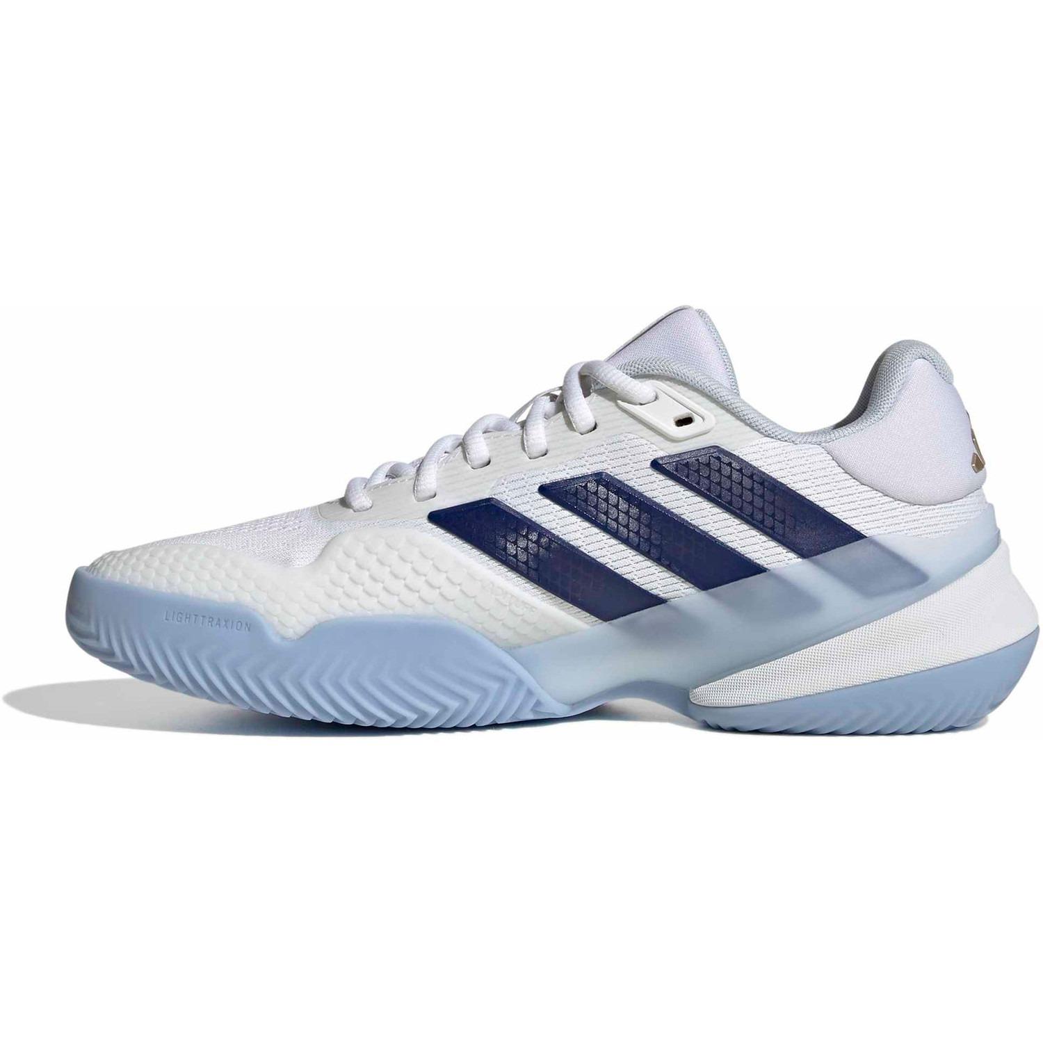 Cette chaussure intègre des technologies de pointe pour un confort et une stabilité optimaux. Son empeigne respirante garde les pieds au frais même lors d'efforts intenses, tandis que le col Geofit robuste assure un maintien parfait du talon. La semelle intermédiaire REPETITOR, légère, offre un excellent amorti et accompagne les mouvements dynamiques sans compromettre le confort. De plus, la semelle extérieure Adiwear, résistante et durable, garantit une adhérence fiable sur les terrains de gravier, vous permettant de vous déplacer avec assurance sur le court. Avec son design blanc épuré, cette chaussure allie style et fonctionnalité, et est idéale pour les athlètes qui privilégient la performance et le confort.