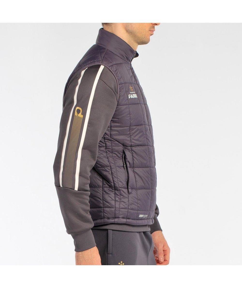 Conçu avec une fermeture éclair centrale, des poches latérales avec fermetures éclair, des emmanchures terminées par une bande élastique et un ourlet réglable avec élastique et bretelles. Surmonté d'un ruban personnalisé et décoré de graphismes Premier Padel.