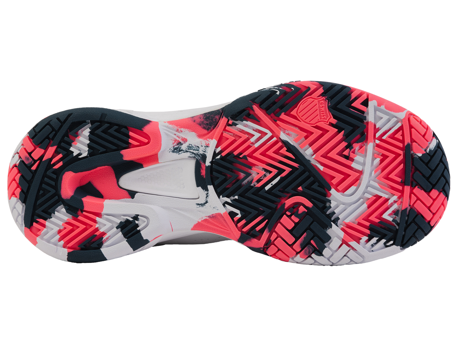 Son empiècement en mesh respirant est associé à une semelle intermédiaire en K-EVA pour un confort et un soutien maximum. Sa semelle extérieure en caoutchouc Aosta 7.0 non marquante avec motif en chevrons offre une traction optimale et agit comme protection contre l’usure pour une durabilité renforcée.