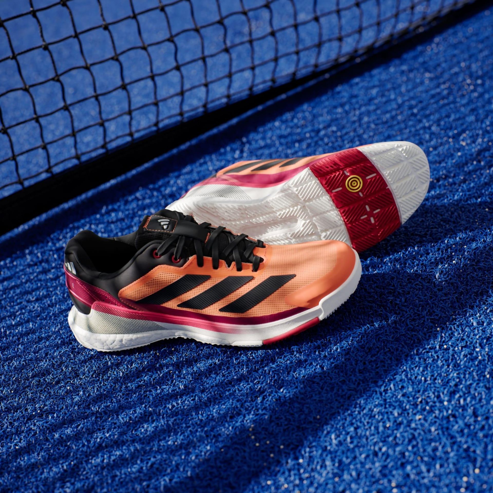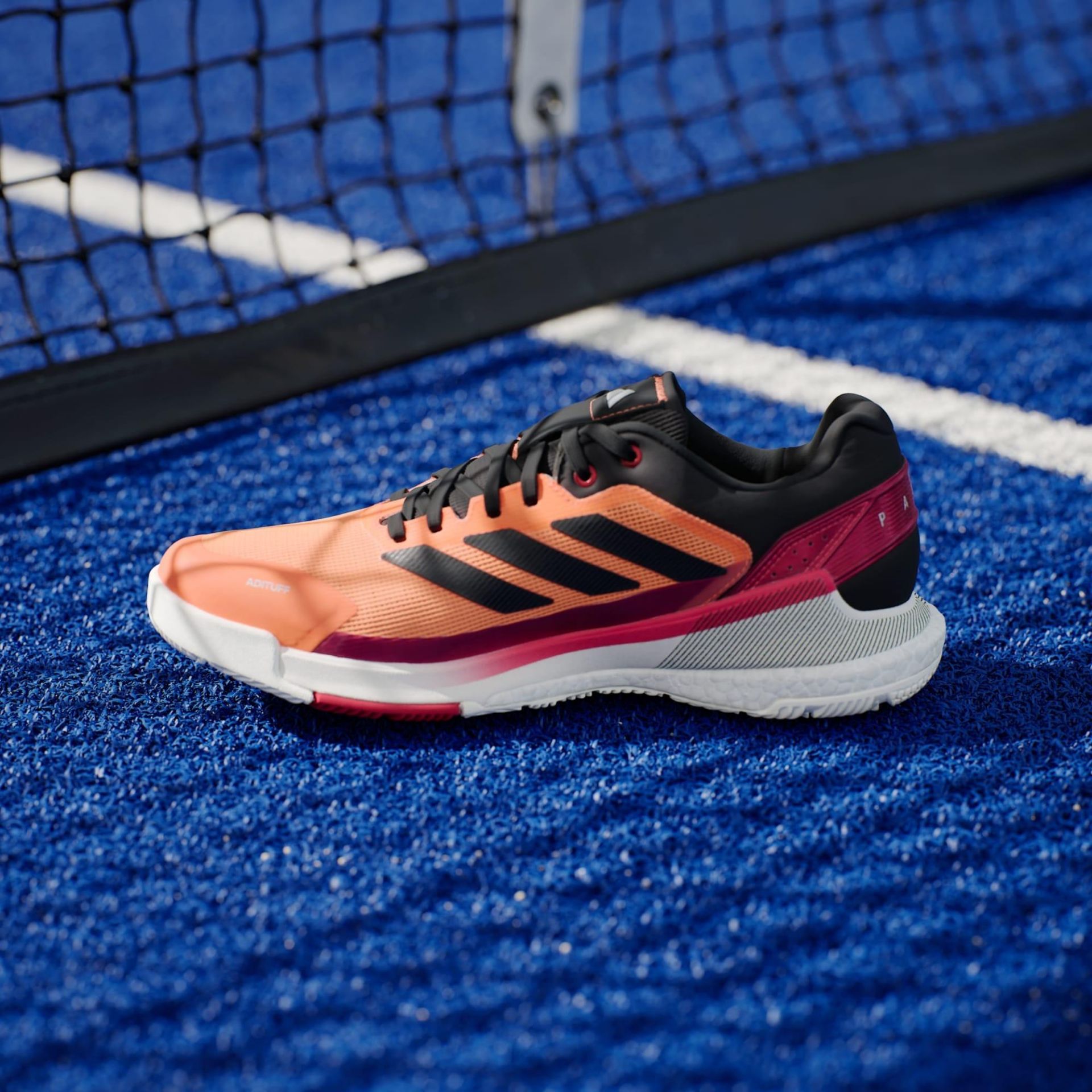 Couvre tout le court de padel avec cette chaussure Crazyquick adidas. Conçue pour des mouvements rapides et sûrs, elle présente une tige légère et une construction Slingframe pour plus de stabilité.