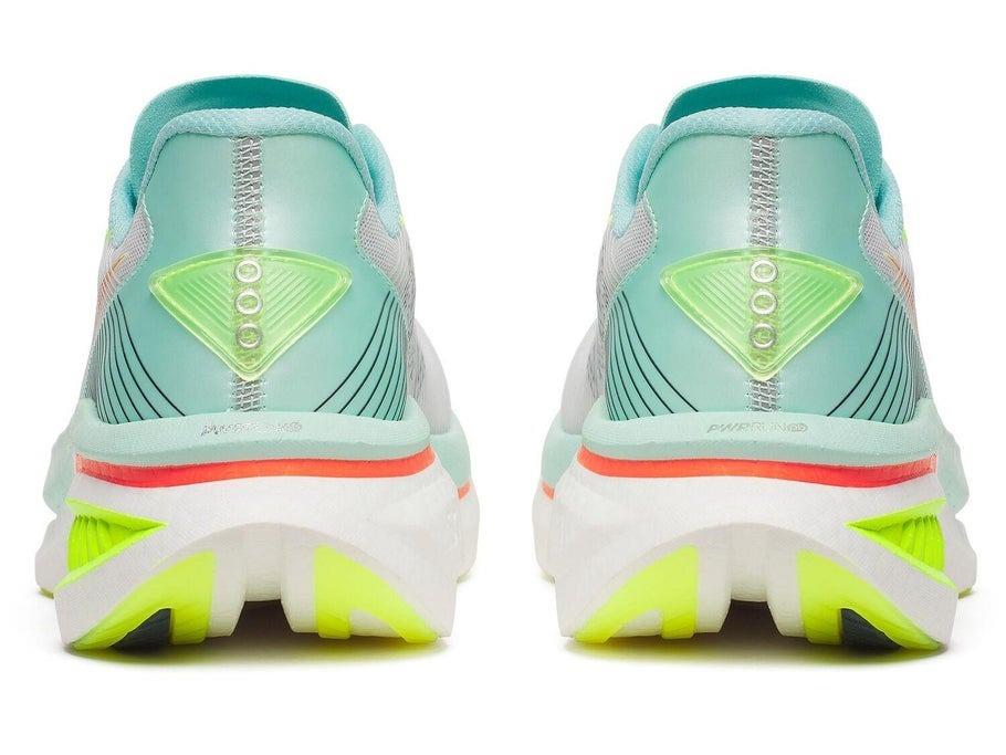 Dotée d'une semelle intermédiaire PWRRUN PB sur toute la longueur pour un retour d'énergie exceptionnel, l'Azura offre un amorti léger et une sensation de dynamisme et de réactivité sous le pied. Sa géométrie SPEEDROLL fluidifie les transitions et favorise une propulsion aisée, transformant même les longues distances en une expérience revigorante.