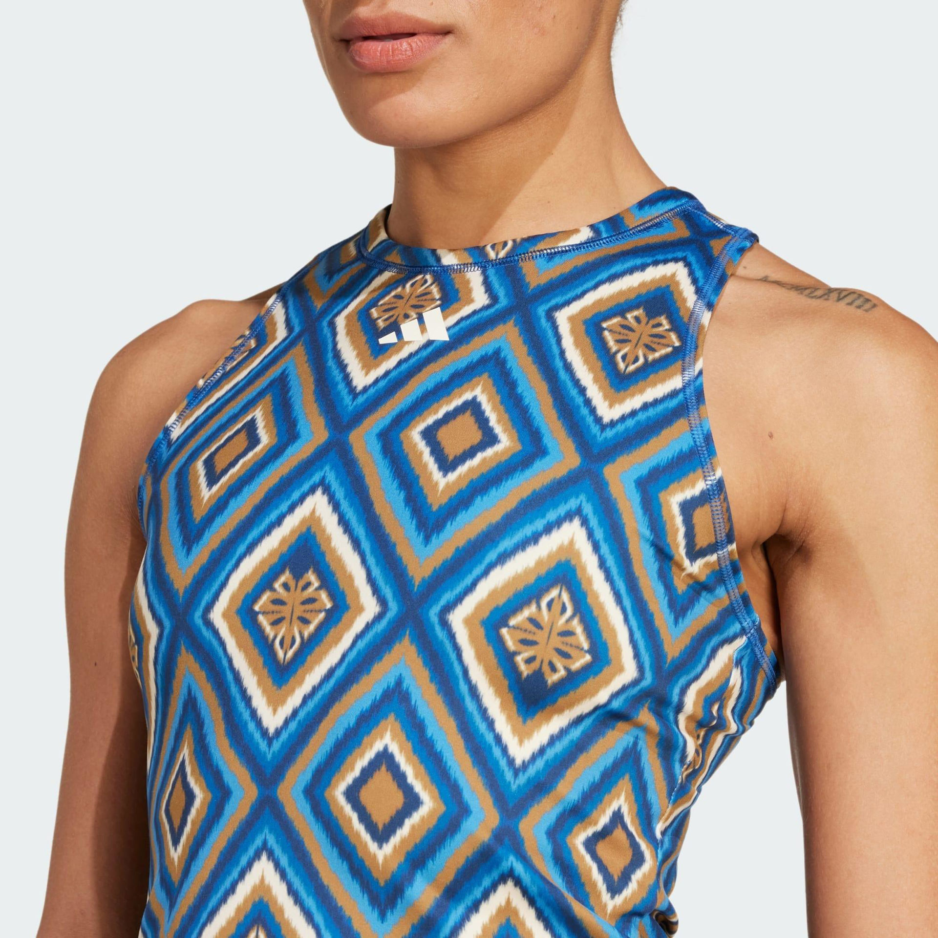 Créé en collaboration avec la marque brésilienne, ce débardeur affiche les imprimés et les couleurs signatures de FARM Rio. Reste au sec à l'entraînement grâce à la technologie AEROREADY. Adopte l'esthétique libre de FARM et révèle l'athlète qui est en toi.