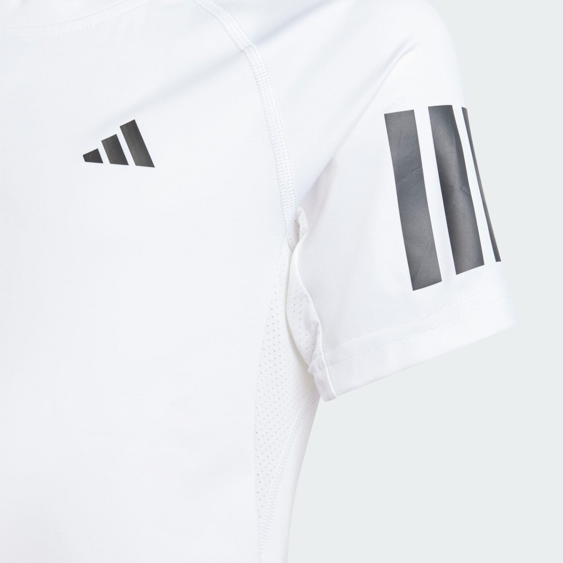 Parfait pour les matchs intenses, ce t-shirt stretch junior s'adapte à chaque sprint, glissade et frappe. CLIMACOOL évacue la transpiration pour te garder au frais et au sec et t'aider à te concentrer sur ta performance. 3 bandes sur les manches ajoutent une touche adidas authentique.