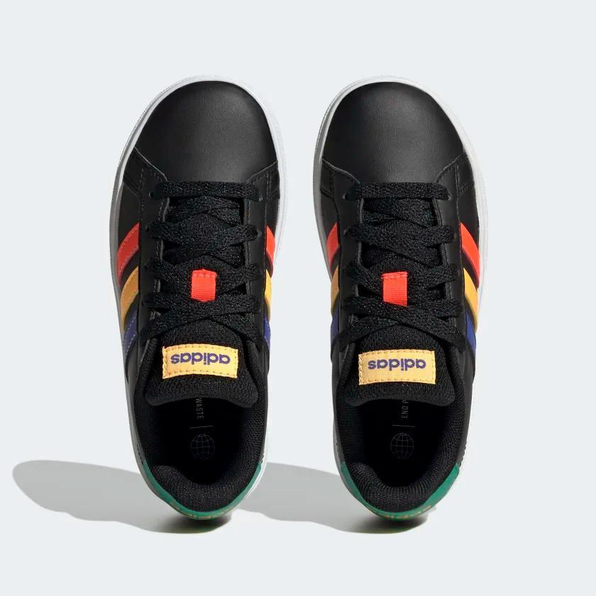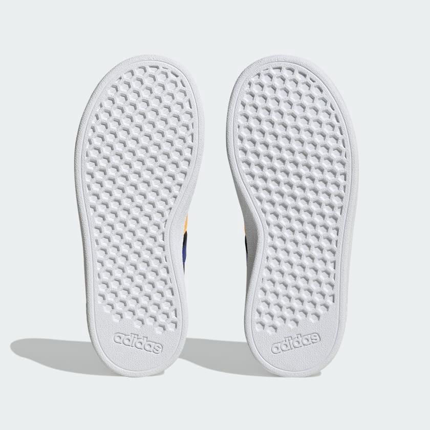Cette chaussure adidas enfants affiche un look stylé inspiré du style tennis des 70's. La semelle cupsole en caoutchouc souple assure une accroche supérieure pour plus de confort.