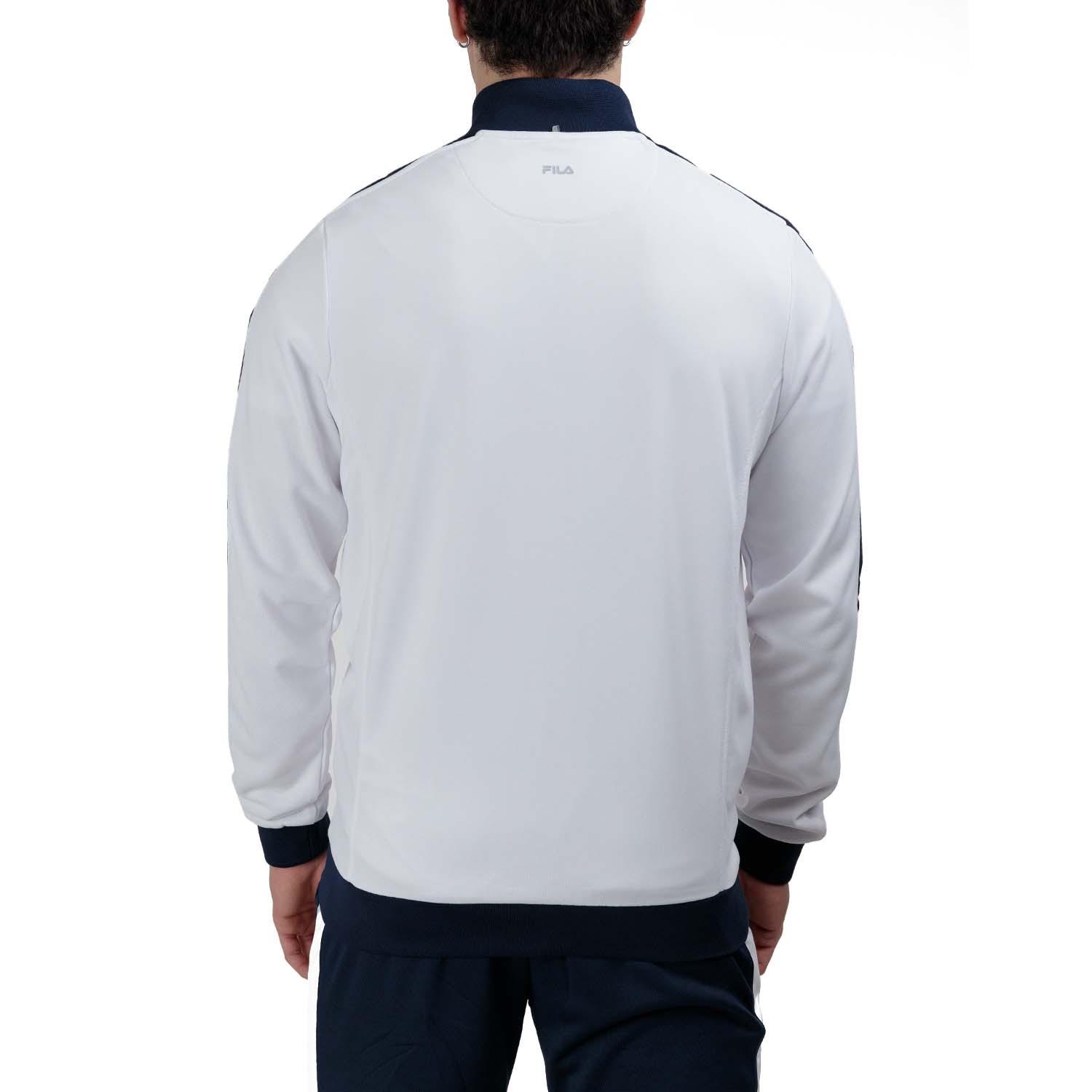 Veste Manuel pour enfant : un modèle classique confectionné dans un tissu confortable et fonctionnel. Bandes contrastantes à l’ourlet et aux poignets. Poches zippées et col montant. Logo Fila discret.