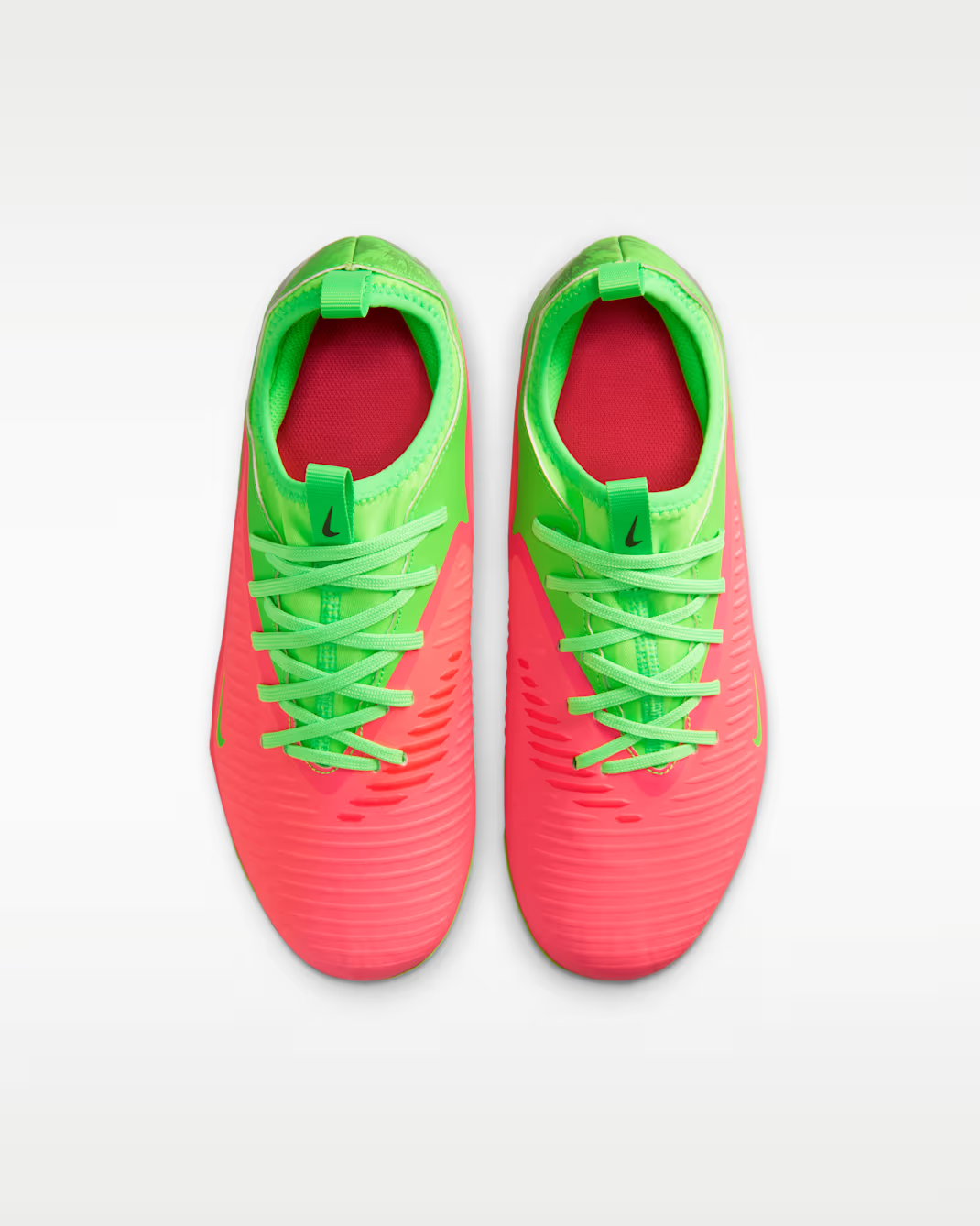 Cette Phantom 6 Academy s'inspire de la détermination d'Erling Haaland, source de ses buts fulgurants. Elle optimise votre précision grâce à une zone de contact NikeSkin, placée là où il faut pour des frappes nettes. Sa texture adhérente vous permet de profiter des occasions de but en rapprochant votre pied du ballon.