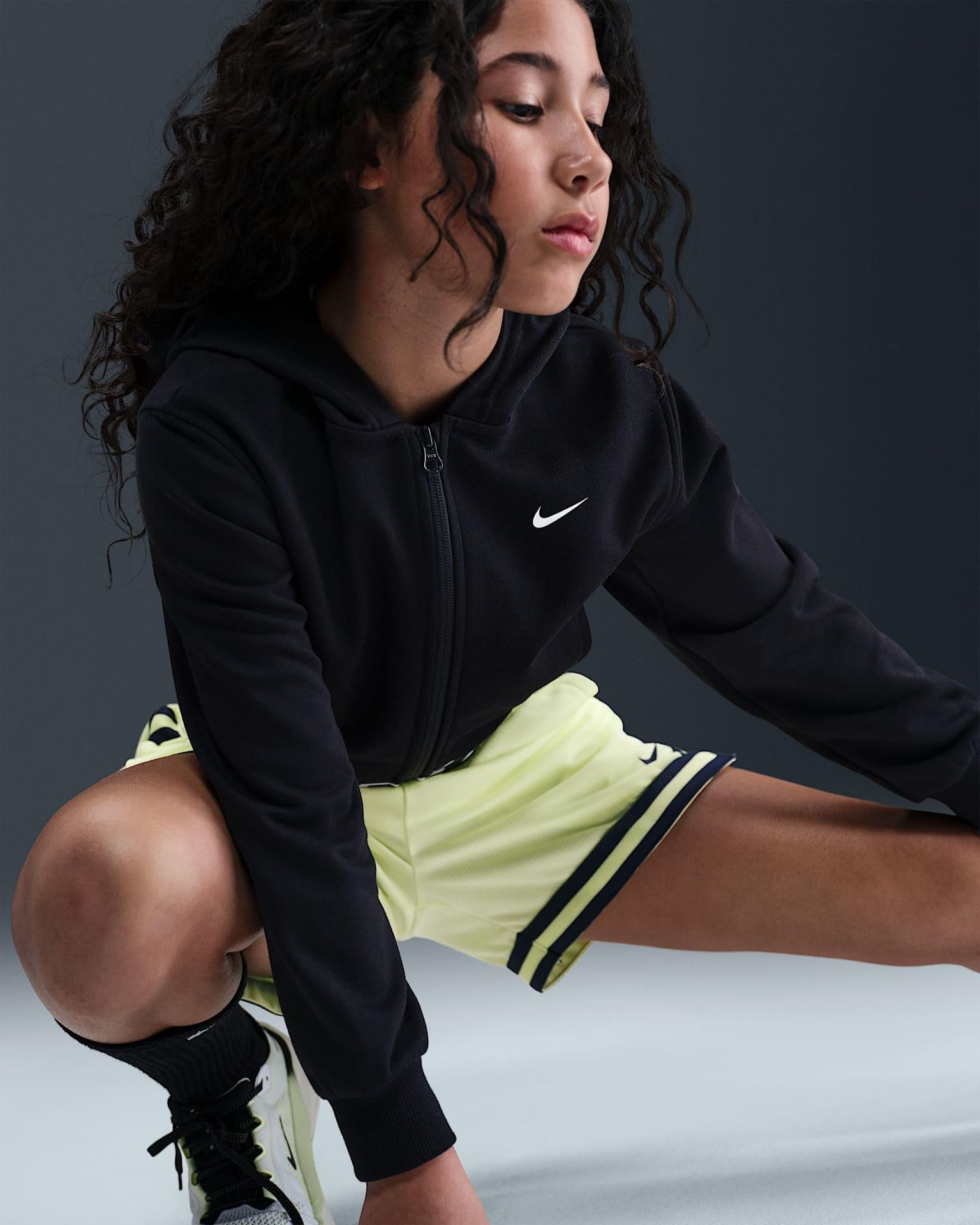 NIKE PRO FLEECE BIG KIDS' (GIRL') DRI-FIT FULL ZIP HOODIE L (12-13A) Noir