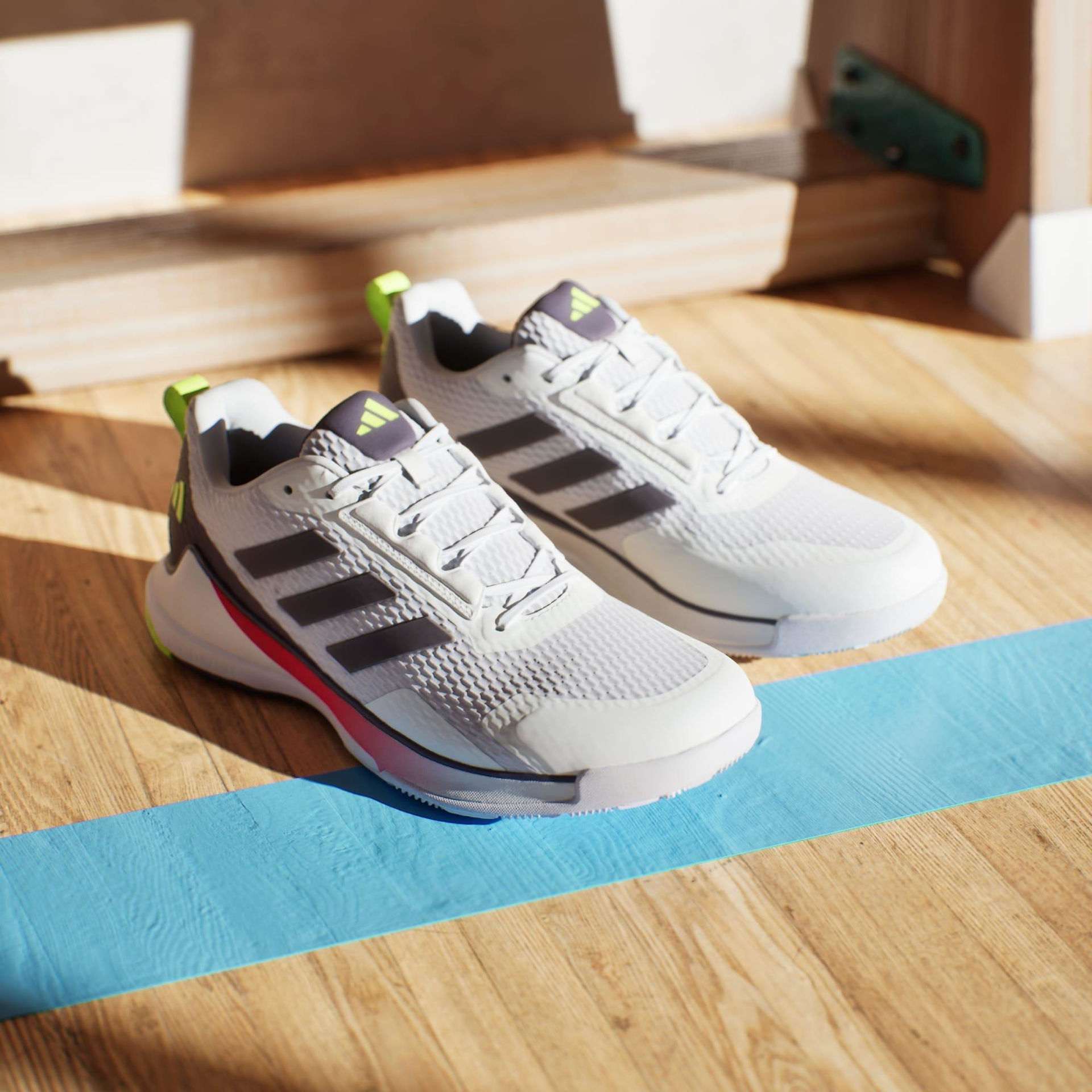 La tige douce, la languette et le col matelassés enveloppent ton pied de confort pour que tu puisses te concentrer sur une chose : la victoire. La semelle intermédiaire en EVA allie légèreté, amorti et maintien lors des sauts et des mouvements latéraux rapides. Au talon, la technologie Lightstrike absorbe les impacts tout en restant dynamique, pour des départs puissants. La semelle extérieure Adiwear non marquante garantit une accroche maximale sur les surfaces indoor pour un contrôle ultime.