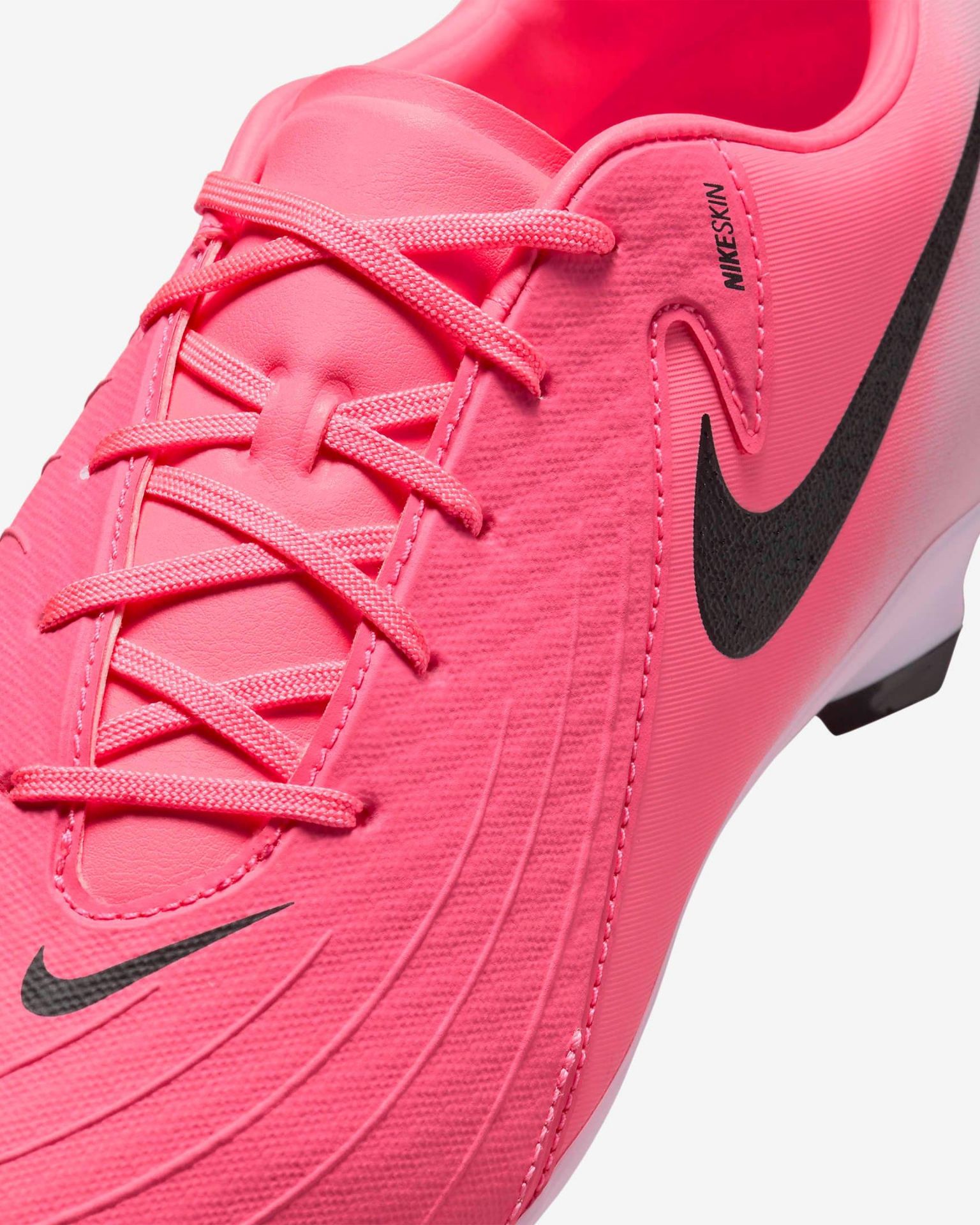 Nous avons étendu la zone tactile NikeSkin par rapport à la version précédente. Cela rapproche encore plus votre pied du ballon pour un meilleur contrôle lors des dribbles et des passes dans des conditions humides ou sèches. Il couvre la zone de frappe de la chaussure, s'étendant du côté du gros orteil jusqu'au petit orteil en passant par les lacets, permettant des coups de pied nets de la botte au ballon.