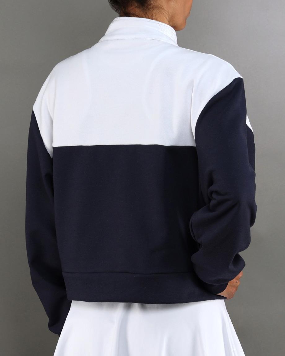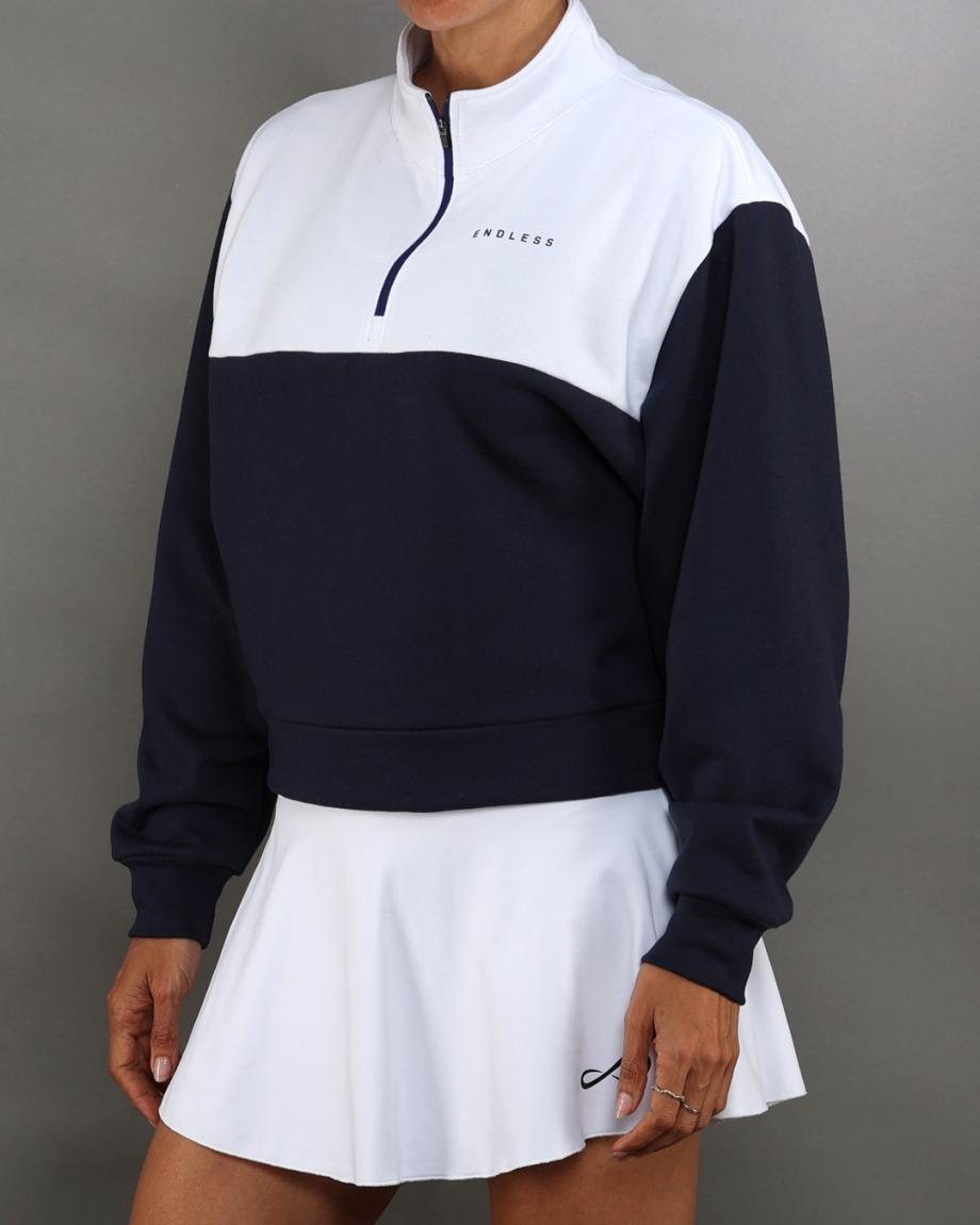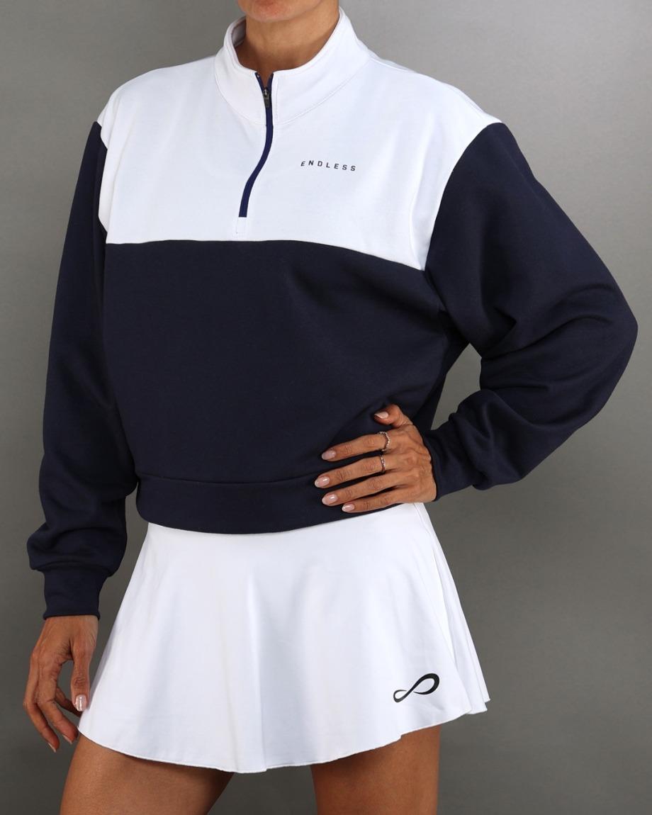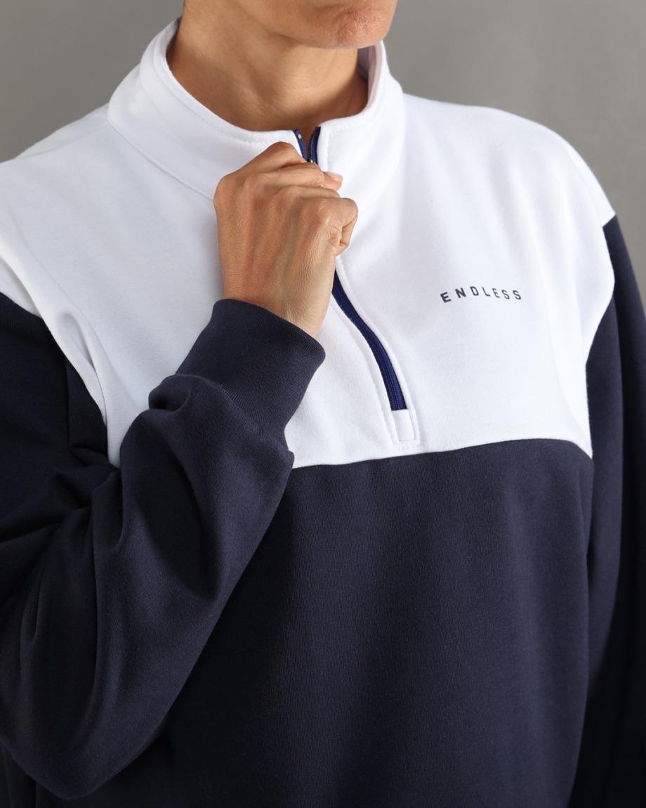 Sa coupe légèrement ample et son zip frontal 1/4 permettent une grande polyvalence et une régulation thermique efficace pendant l'effort physique ou les moments de détente.