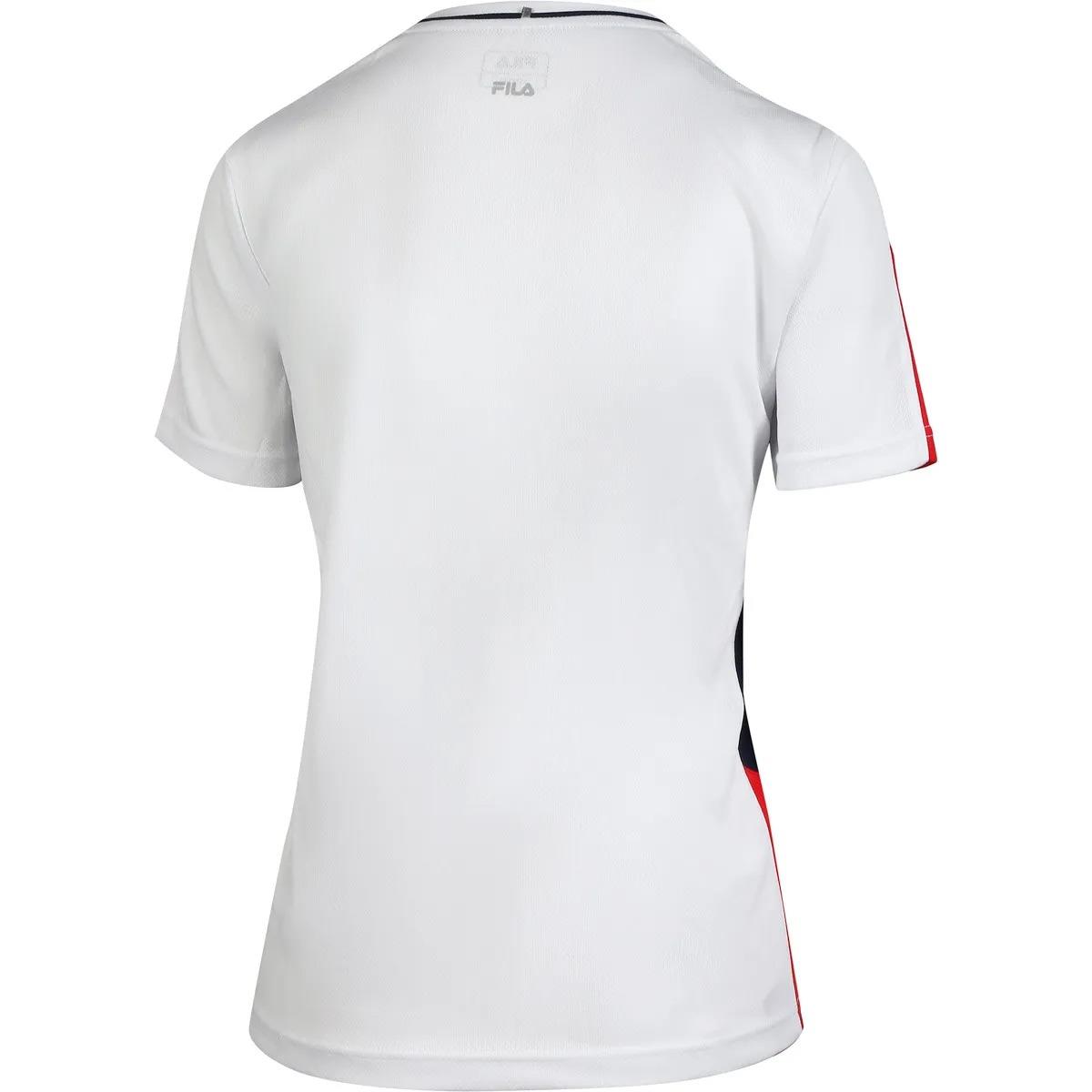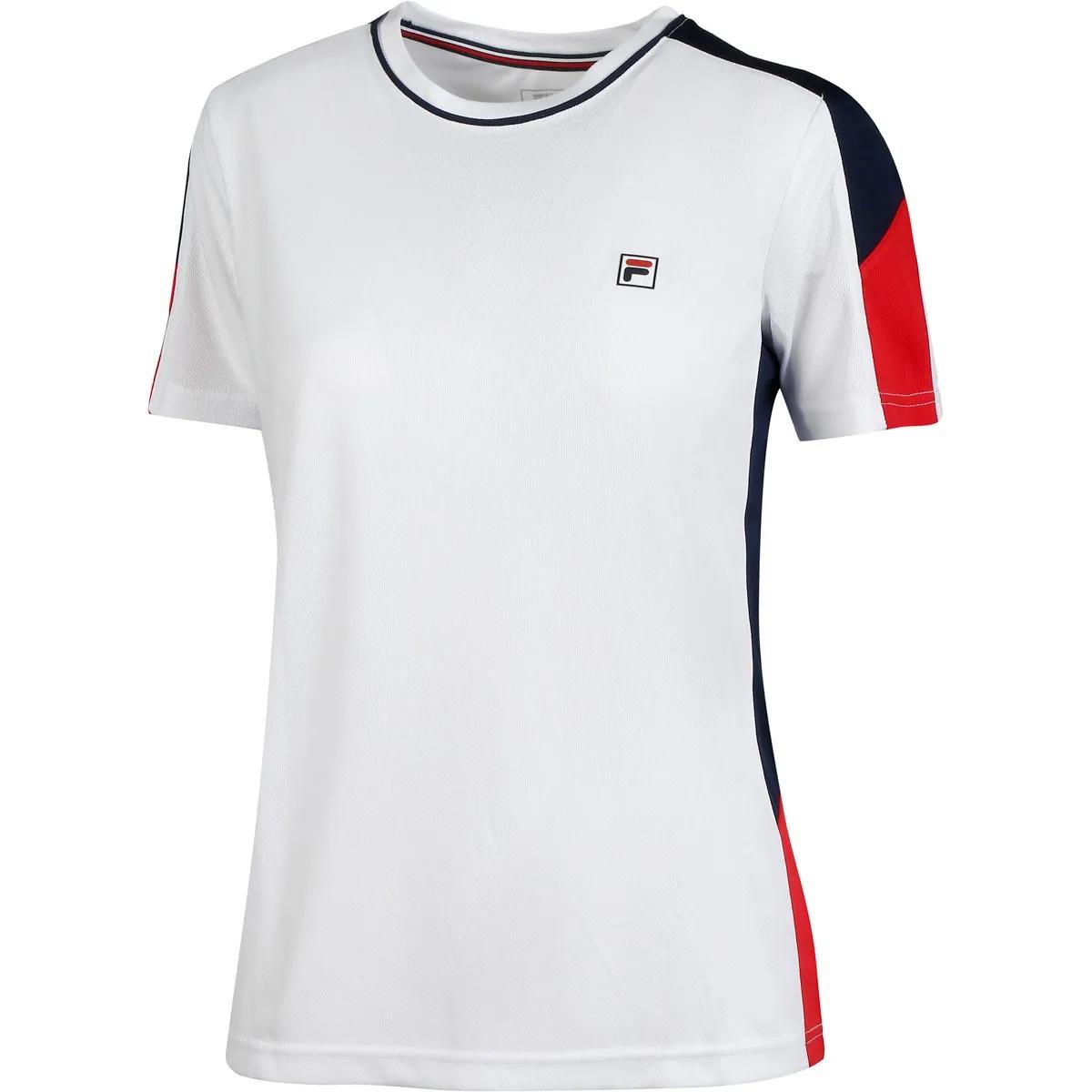 Côté design, ce t-shirt blanc est dynamisé par des touches de bleu et de rouge sur les côtés.
