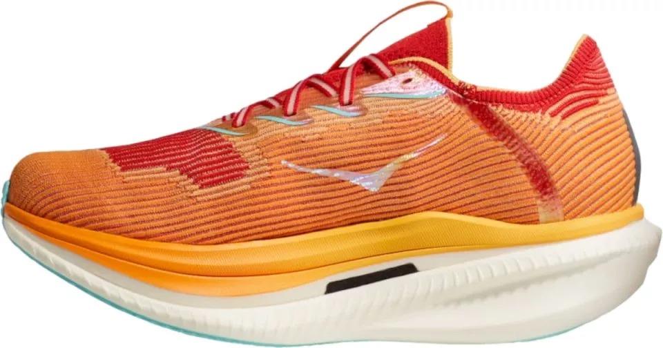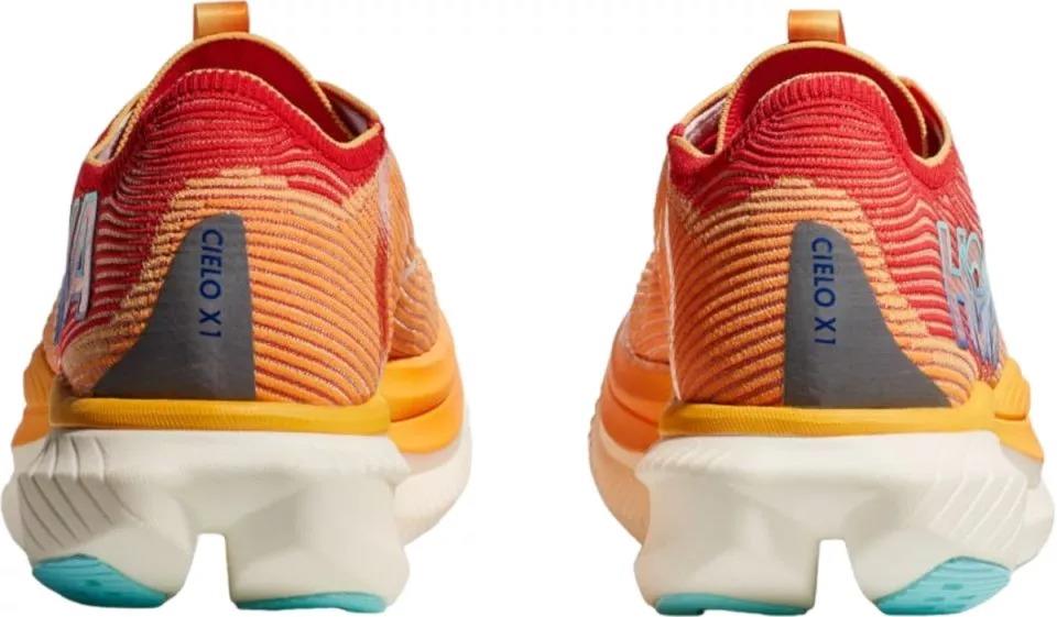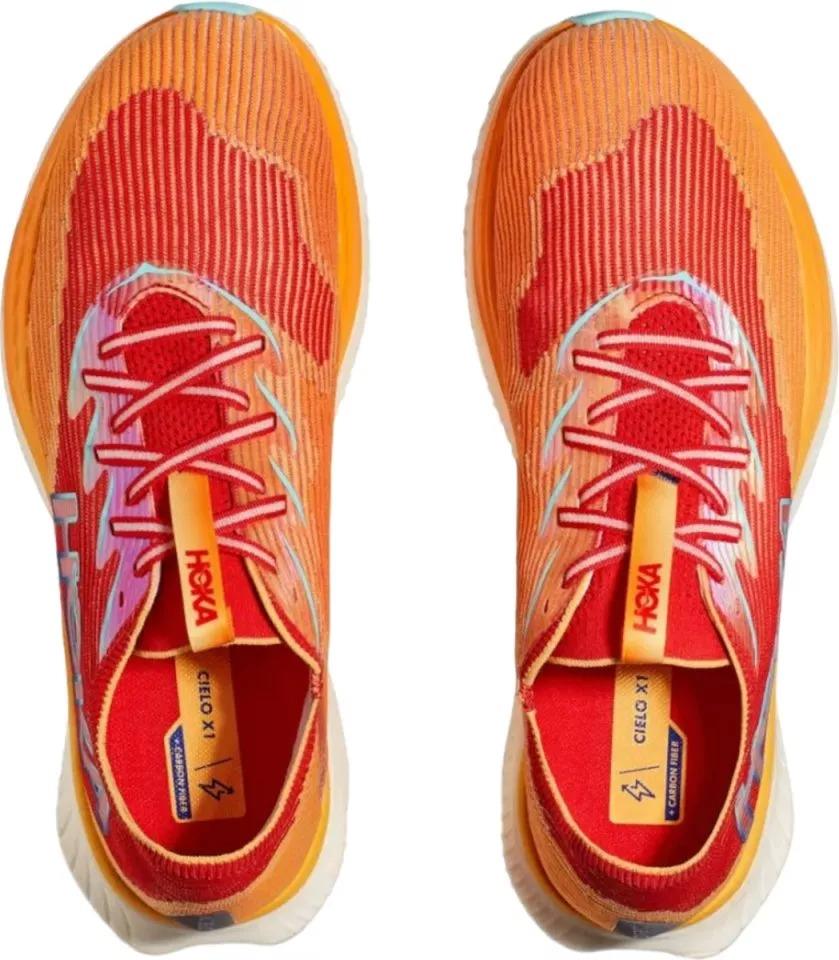 La chaussure de course unisexe Hoka Cielo X1 est un modèle de course ultra rapide doté d'une plaque en carbone et d'une mousse Pebax pour des performances record.