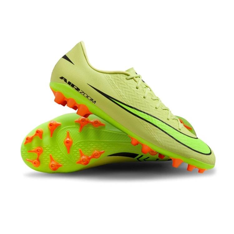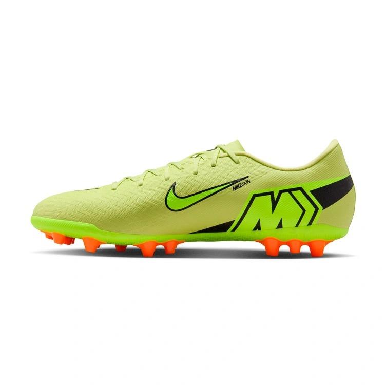 Chaussures de football Nike Zoom Mercurial Vapor 16 Academy AG pour adulte. Chaussures à lacets, à utiliser sur des terrains en gazon artificiel. Chaussures de gamme moyenne, couleur Limelight-Volt-Hyper Crimson.